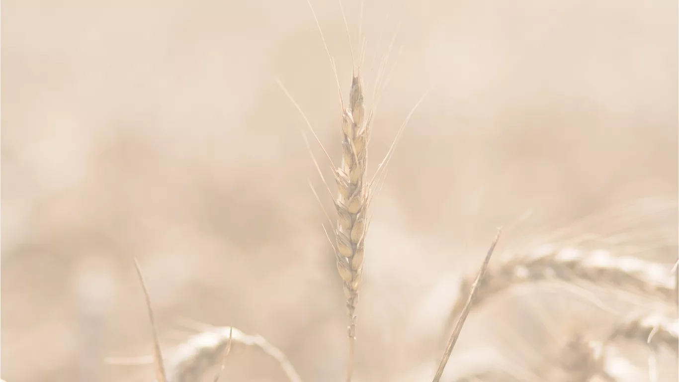 A laptop, a bowl of corn kernels, and a plate of coffee beans are placed on a wooden table.